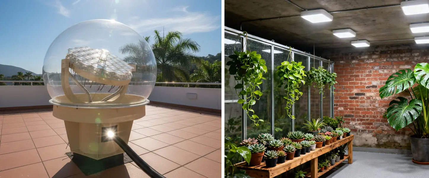 与试图通过电子方式模拟阳光的人工照明系统不同,室内自然阳光系统依赖于真实太阳辐射的物理传输。这一点在对光质量、光谱完整性以及人类或生物反应有要求的应用中至关重要。